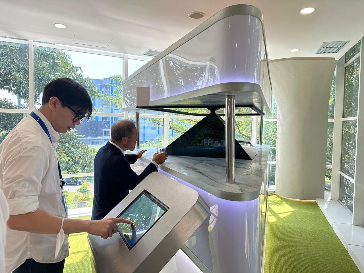 The development of a hologram box featuring 3D content of DCI Indonesia building structures in various regions. The hologram objects can also be controlled via a tablet. Additionally, we have developed a knock-down hologram box for exhibitions, which is very flexible and can be moved easily to different locations.